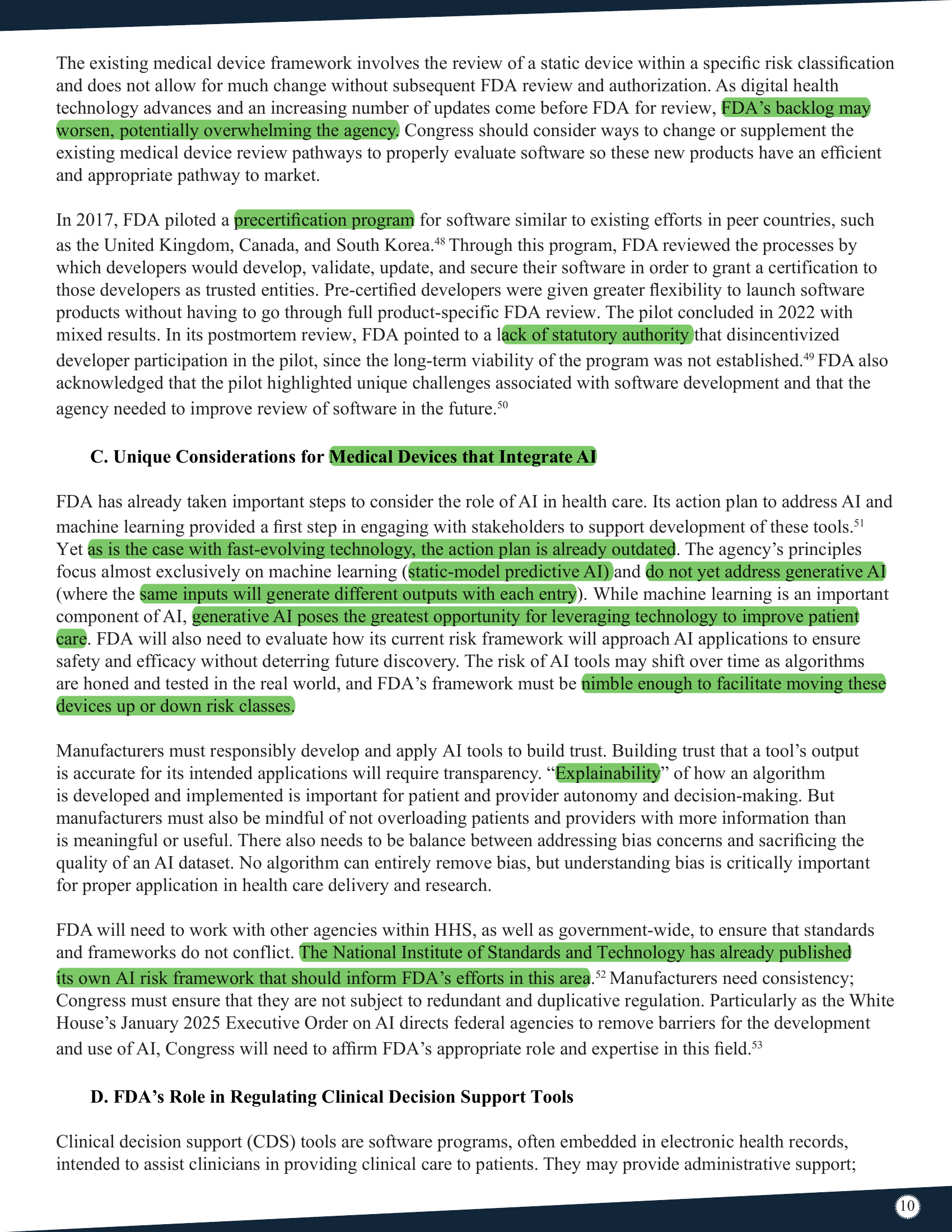 Interesting that the Senate specifically calls out FDA’s precertification program. They note the pilot’s “lack of statutory authority". It failed not because the concept was wrong, but because the FDA couldn’t legally implement it.