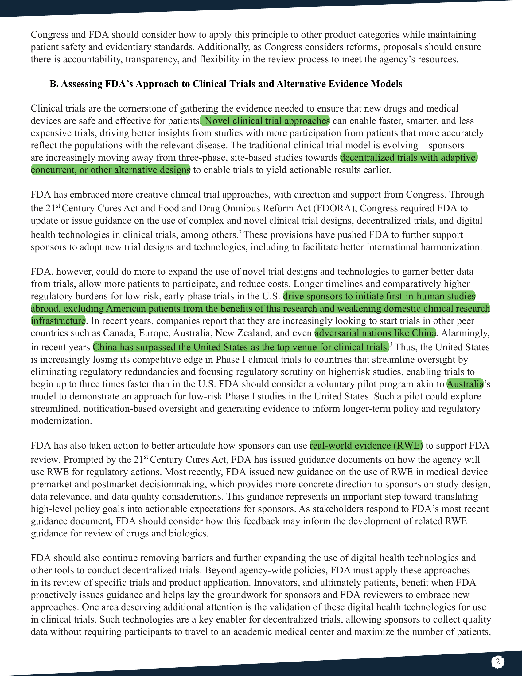 The Senate doesn’t mince words: they call China “adversarial” and flag that “China has surpassed the United States as the top venue for clinical trials.” That's a significant data point for industry and regulators alike.
