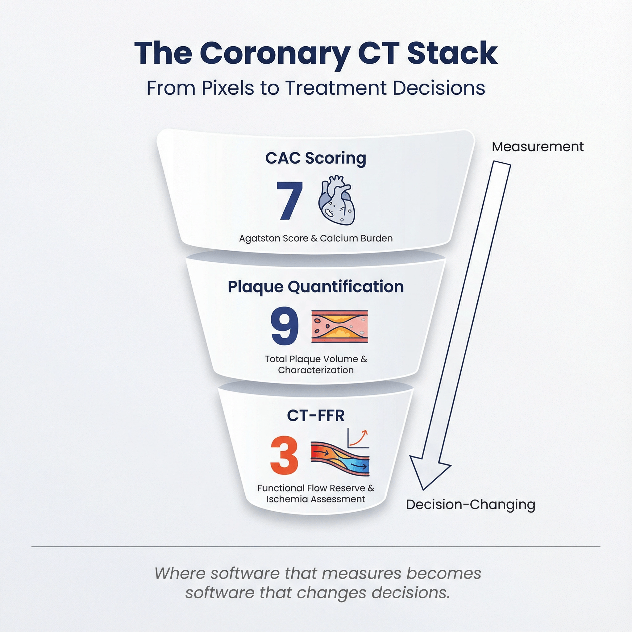 The highest-leverage clinical wedge: coronary CT (CAC, plaque, CT-FFR) 🔗