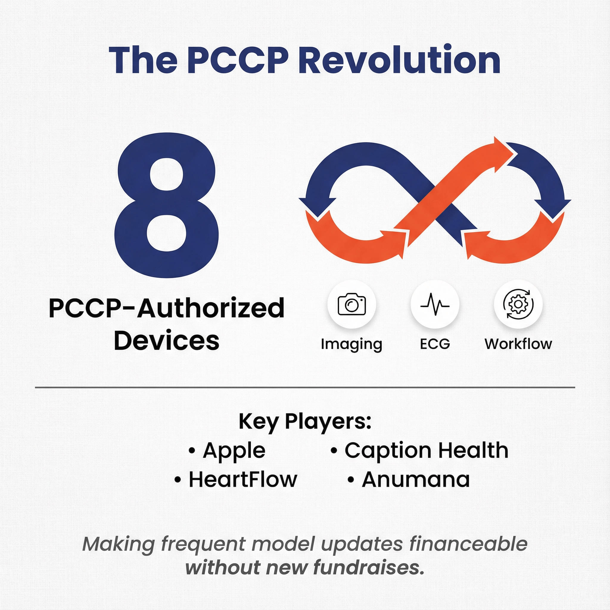 - If your roadmap assumes frequent model updates, PCCP is the regulatory mechanism that can make that roadmap financeable without turning each update into a new fundraise.