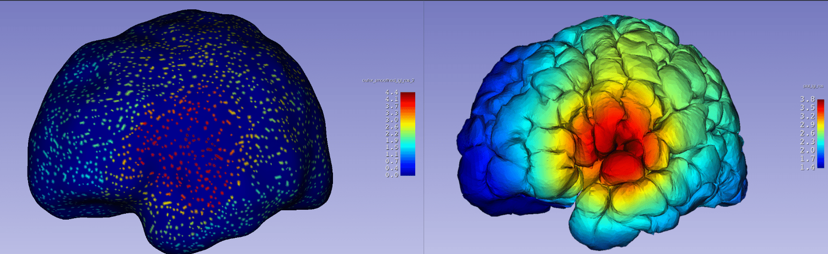 Fig.5: (Left): Local Gyrification Index (LGI) computed in the outer
